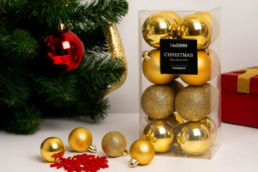 | Im Paket | 16 × goldene Christbaumkugeln, 5 cm, bruchsicher |