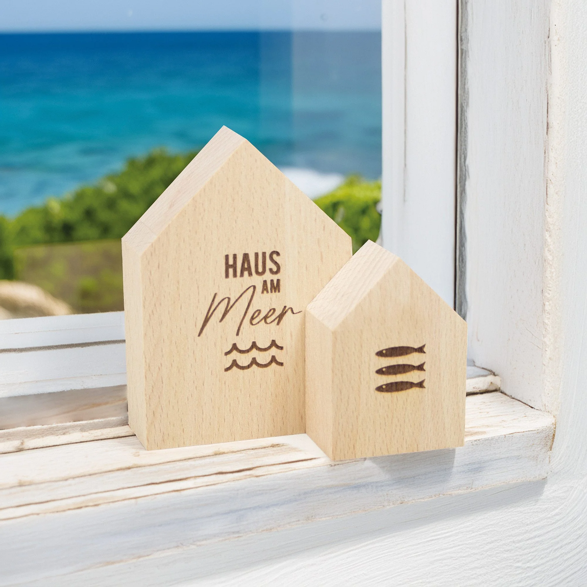 Produktinformationen "Deko-Holzhäuschen „Haus am Meer“ – aus nachhaltigem Buchenholz"