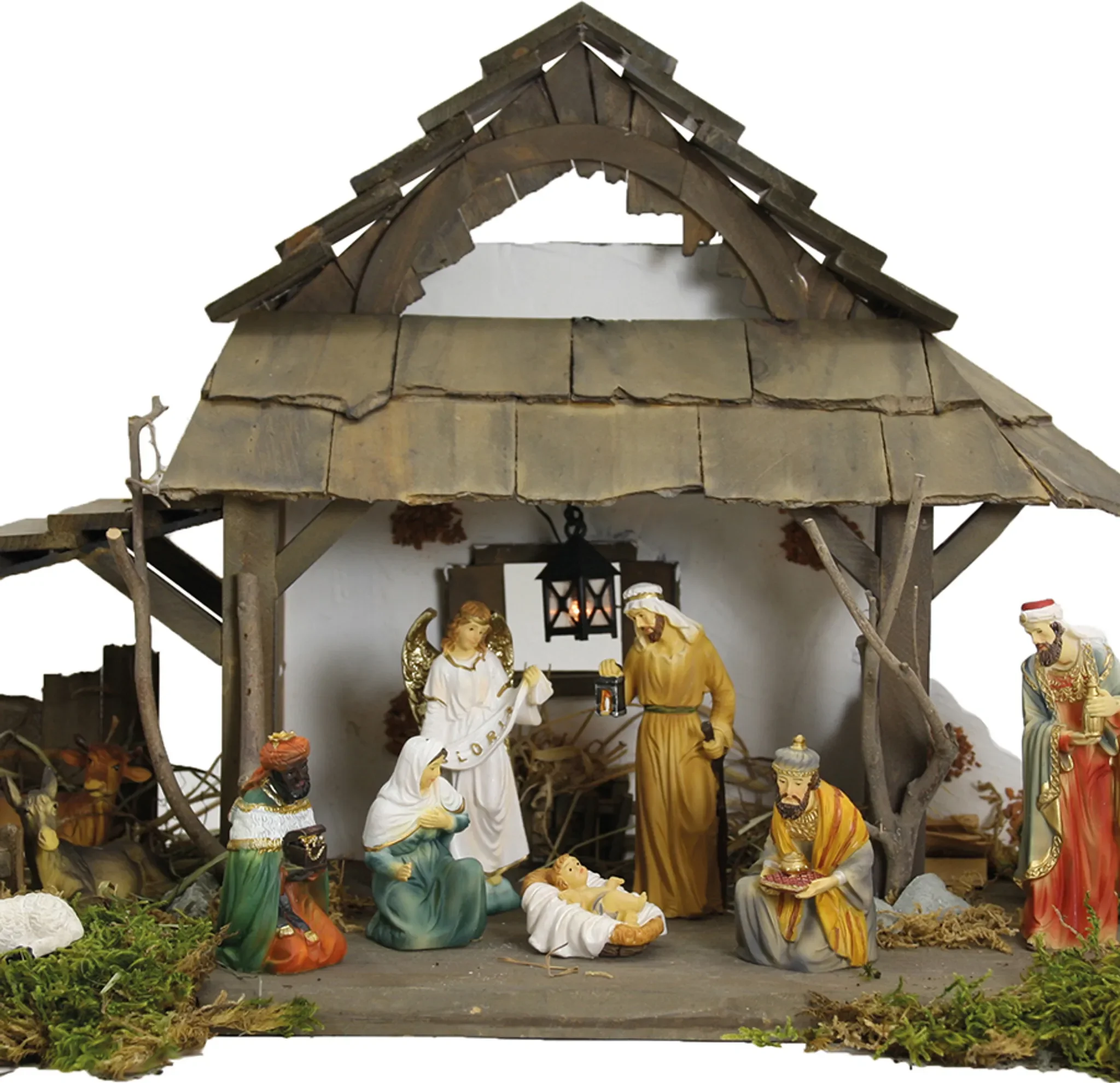 Kunstguss in Holzoptik • Hochwertige Handbemalung • Für Weihnachtskrippen & Tischdekoration