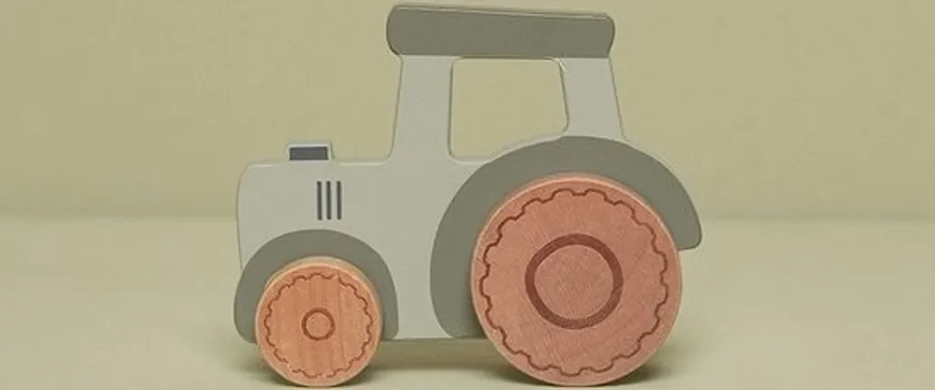 Die hochwertige Verarbeitung, Farben auf Wasserbasis und die Erfüllung aller europäischen Sicherheitsnormen machen den Traktor zu einem langlebigen und sicheren Begleiter für den Alltag kleiner Entdecker. Ob als Spielzeug oder dekoratives Accessoire – dieser Holztraktor gehört einfach in jede Bauernhof-Spielwelt.