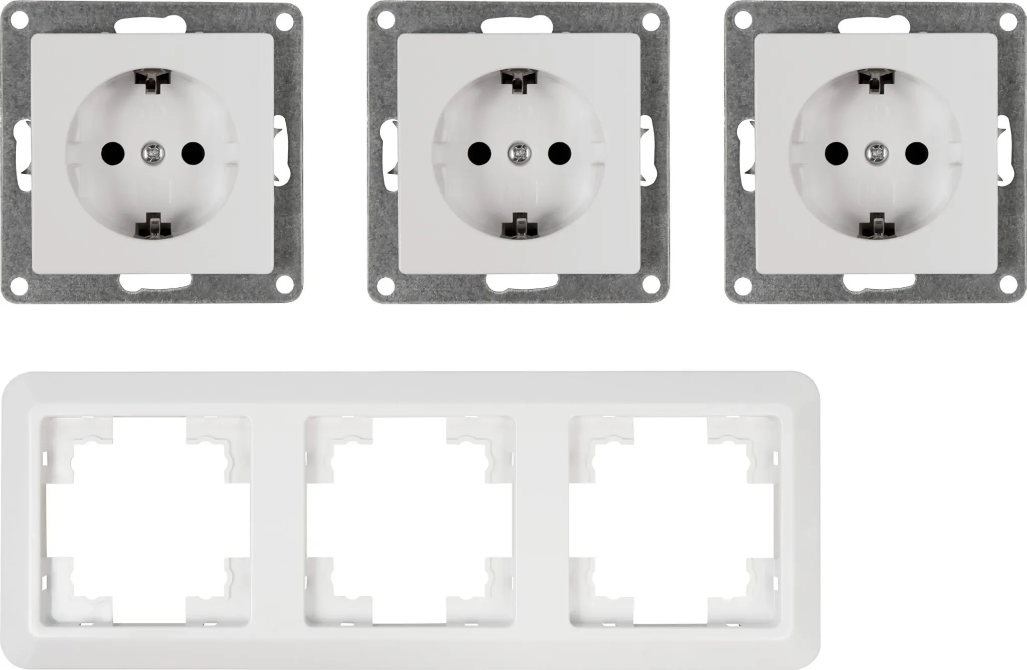 Schutzkontakt-Steckdosen & 3-fach Rahmen für Unterputzmontage