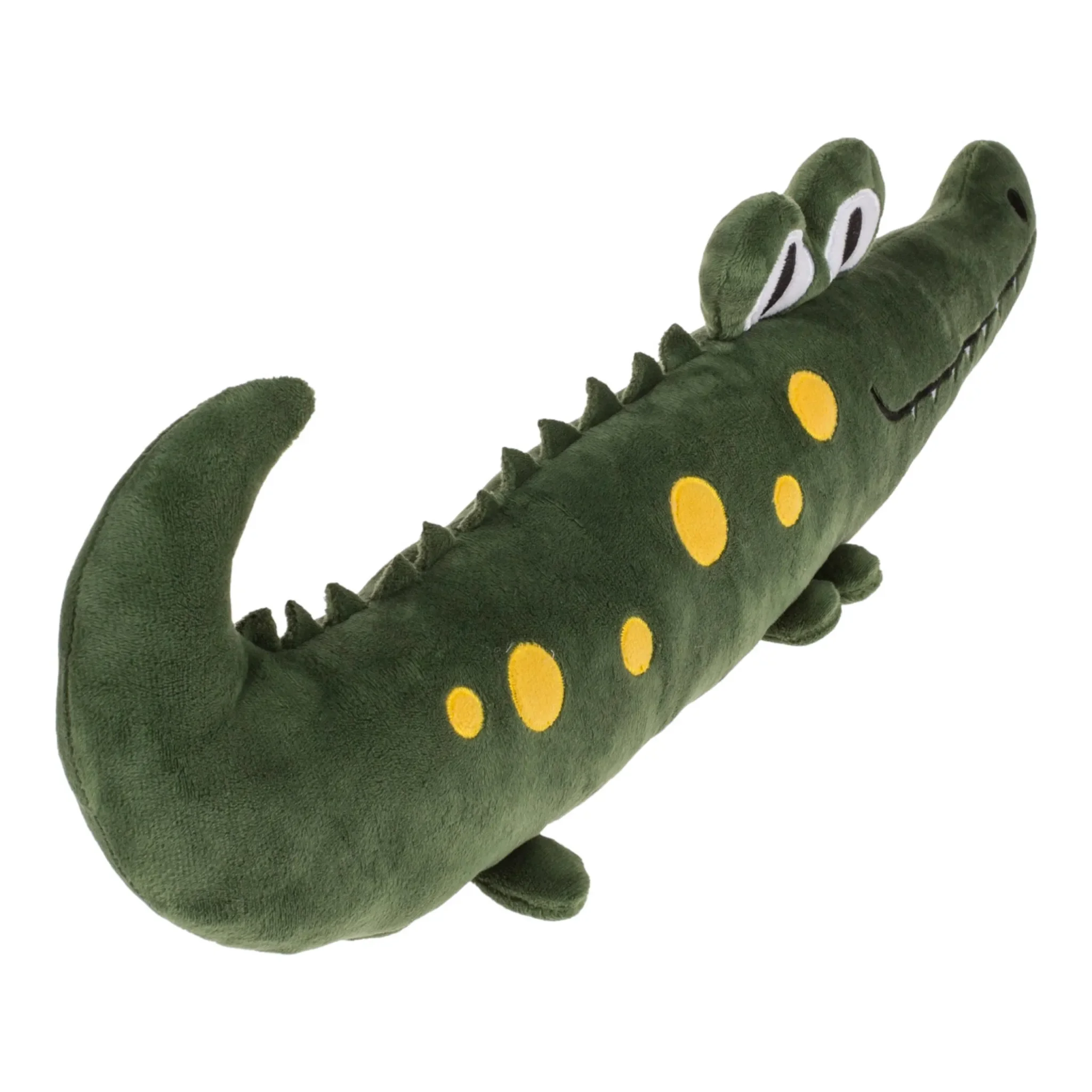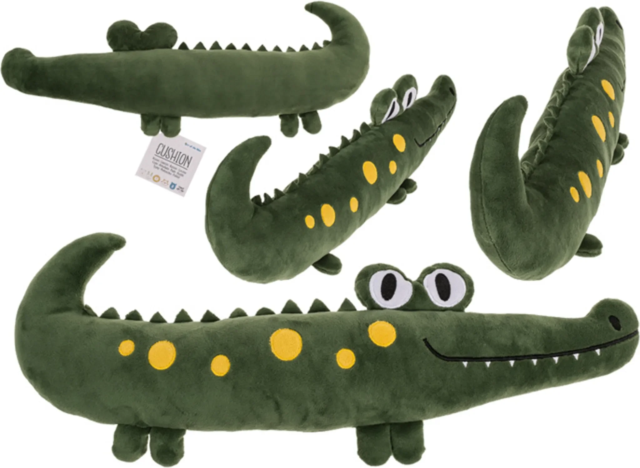 Dieses Plüsch-Kissen in fröhlicher Krokodilform bringt eine liebevolle Portion Abenteuer ins Kinderzimmer. Mit seinem weichen Material, den gelben Punkten und dem freundlichen Gesicht ist es sowohl Kuscheltier als auch dekoratives Kissen – ideal für kleine Entdecker und Fans tierischer Begleiter.