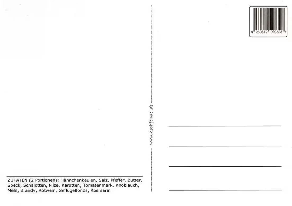Rezept-Postkarte: Coq au vin – Französische Küche