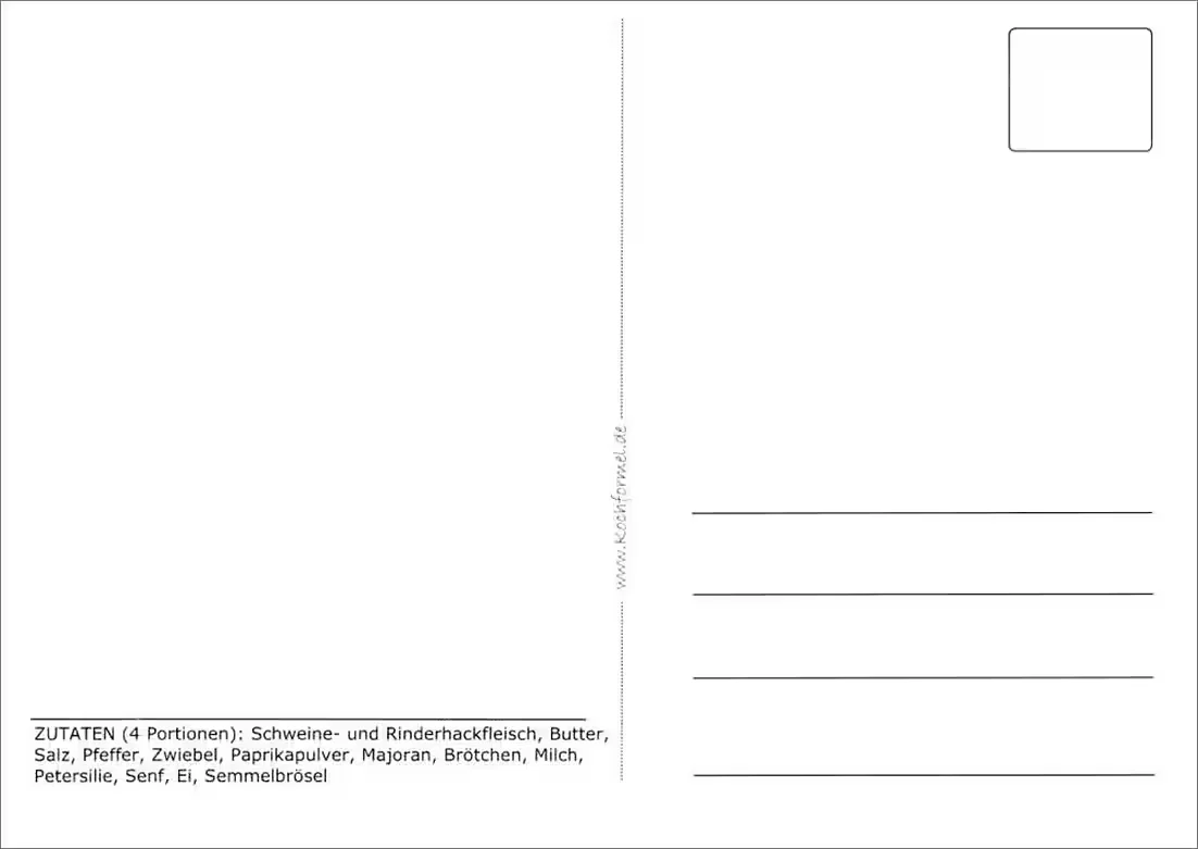 Rezept-Postkarte: Frikadellen – Nordrhein-Westfälische Küche