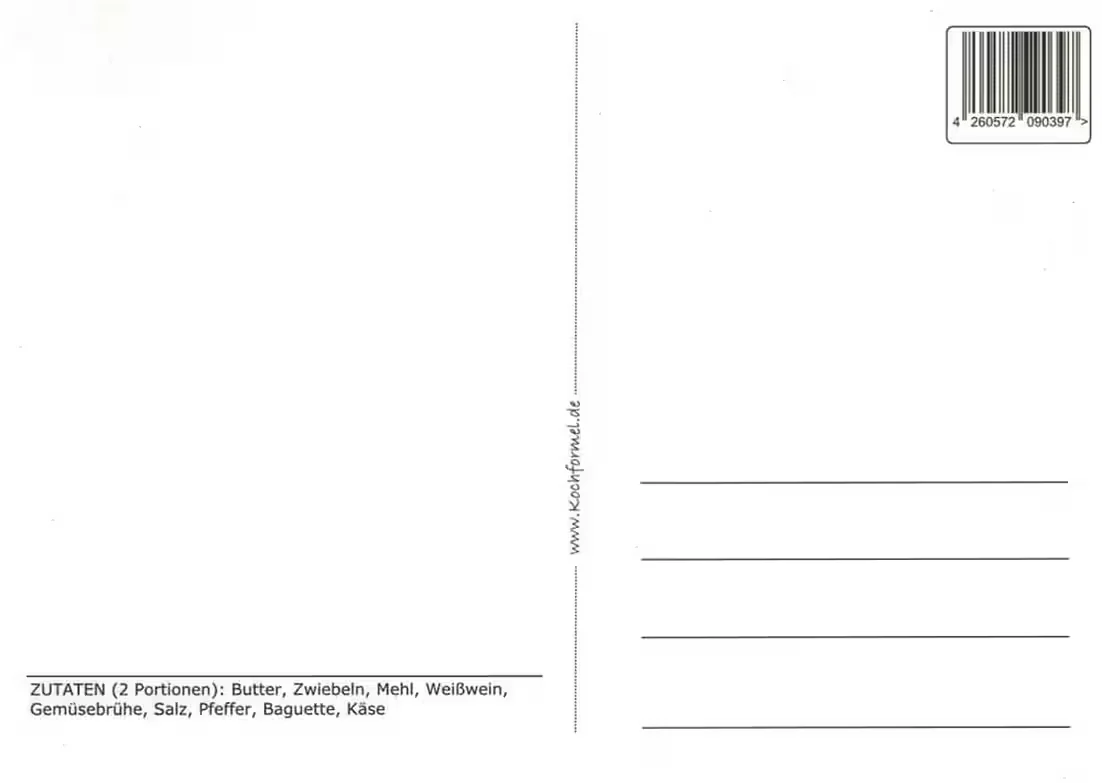 Rezept-Postkarte: Zwiebelsuppe – Französische Küche