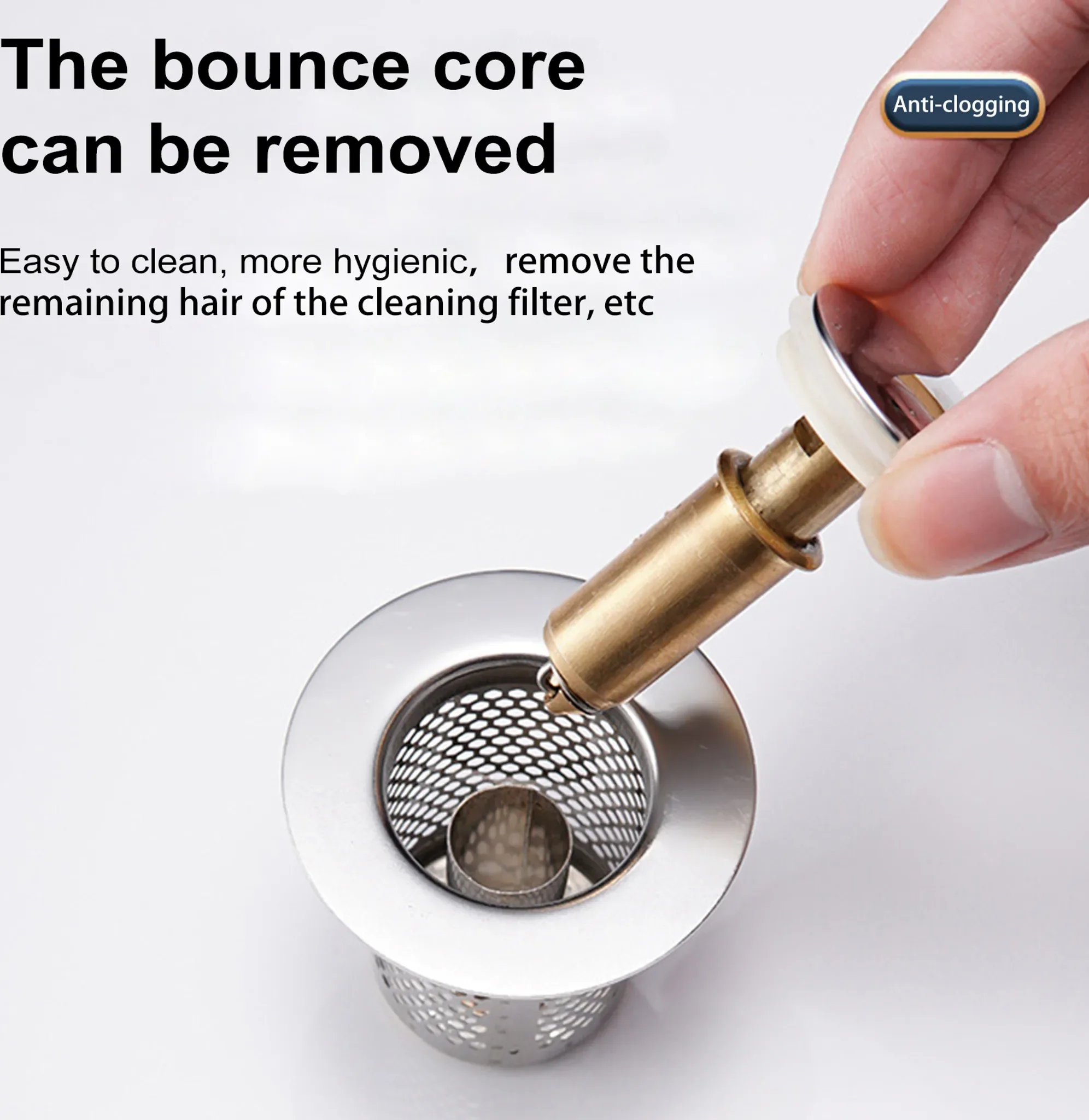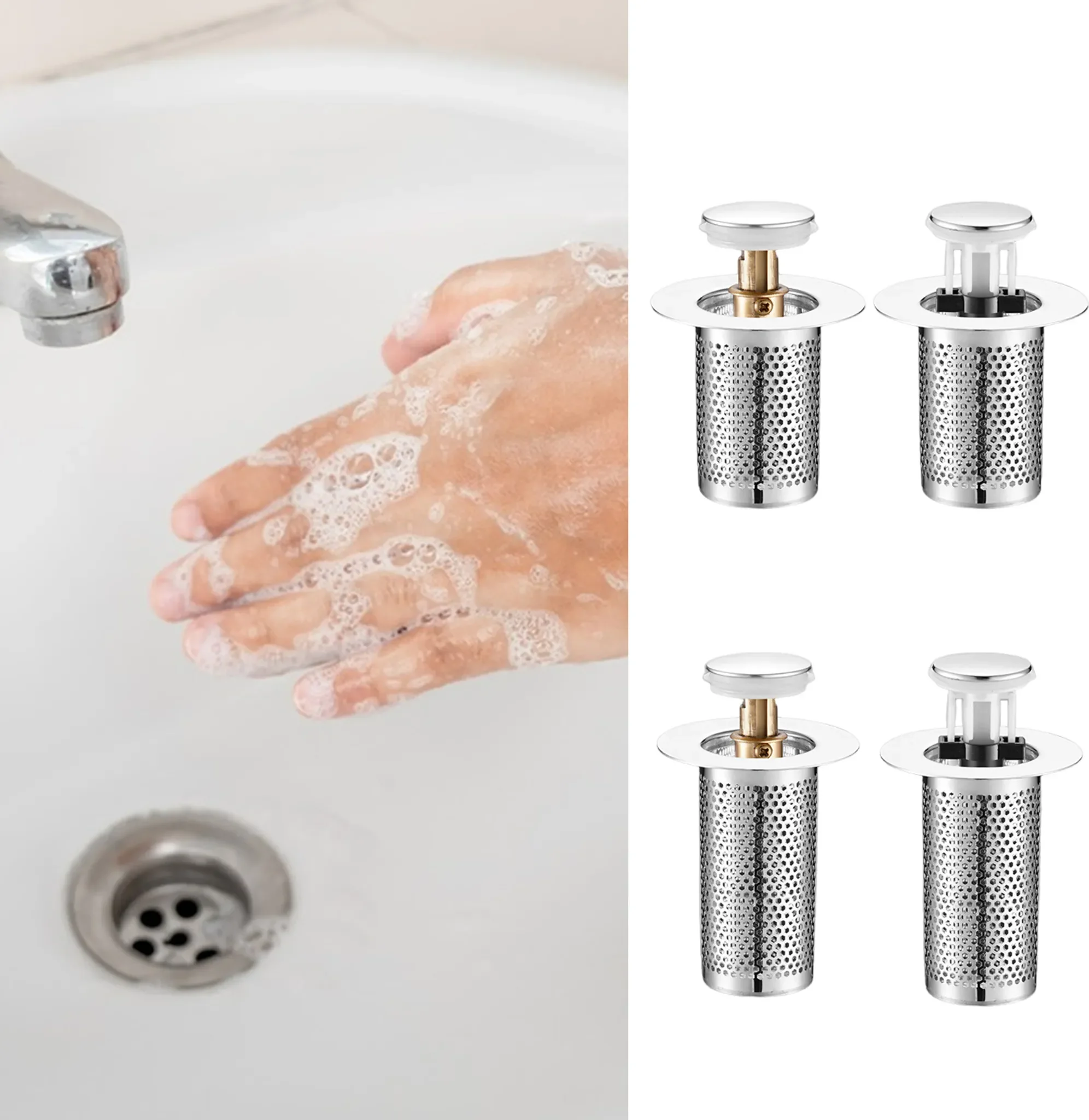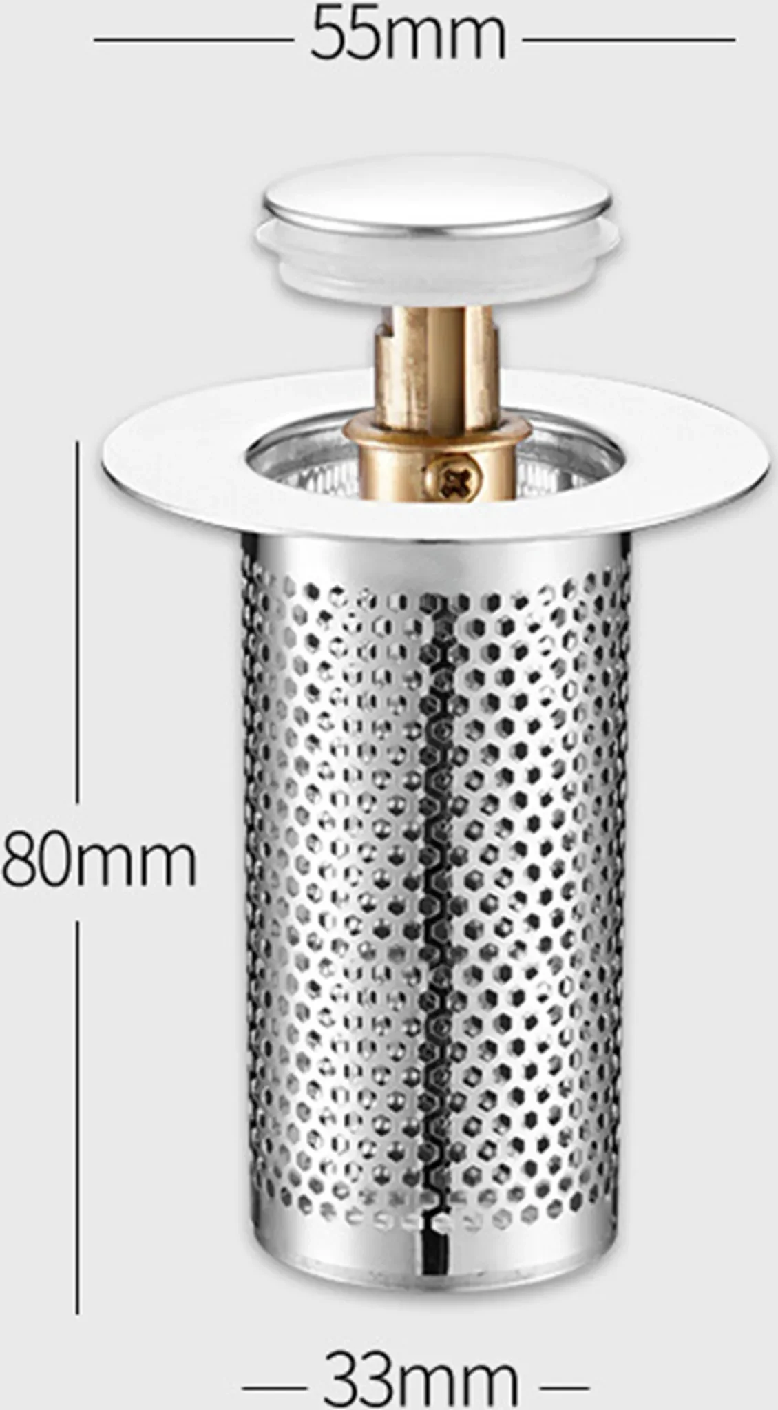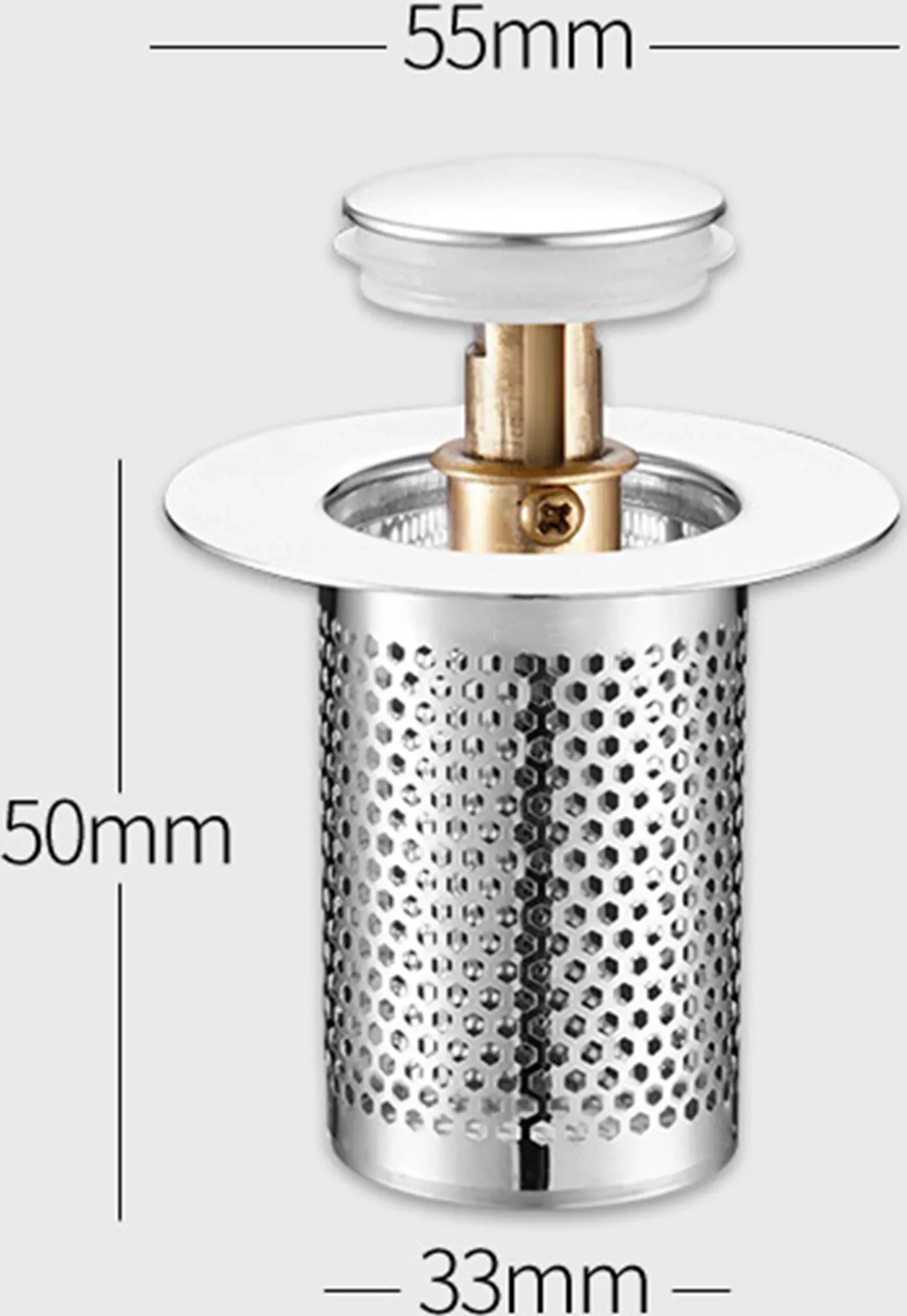 Universal-Waschbeckenstöpsel mit Haarsieb – Rostfreier Messingkern