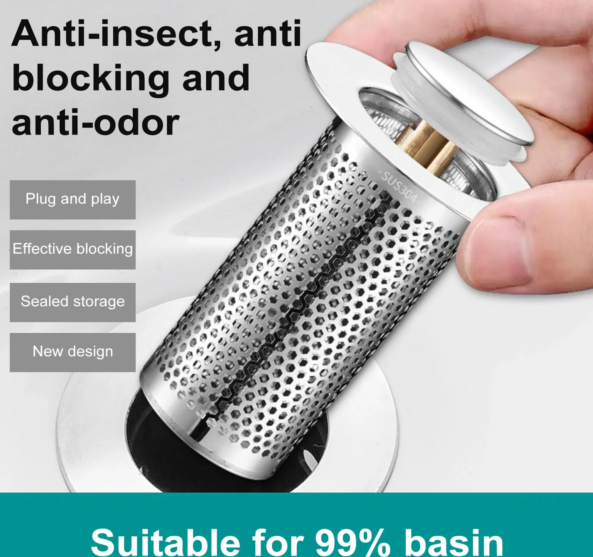 Dieser hochwertige Waschbeckenstöpsel kombiniert Stopfen und Filter in einem Gerät. Der integrierte Anti-Verstopfungskorb fängt Haare und Schmutz effektiv auf, während das Wasser ungehindert abfließt – für saubere und funktionale Abflüsse ohne lästiges Reinigen.