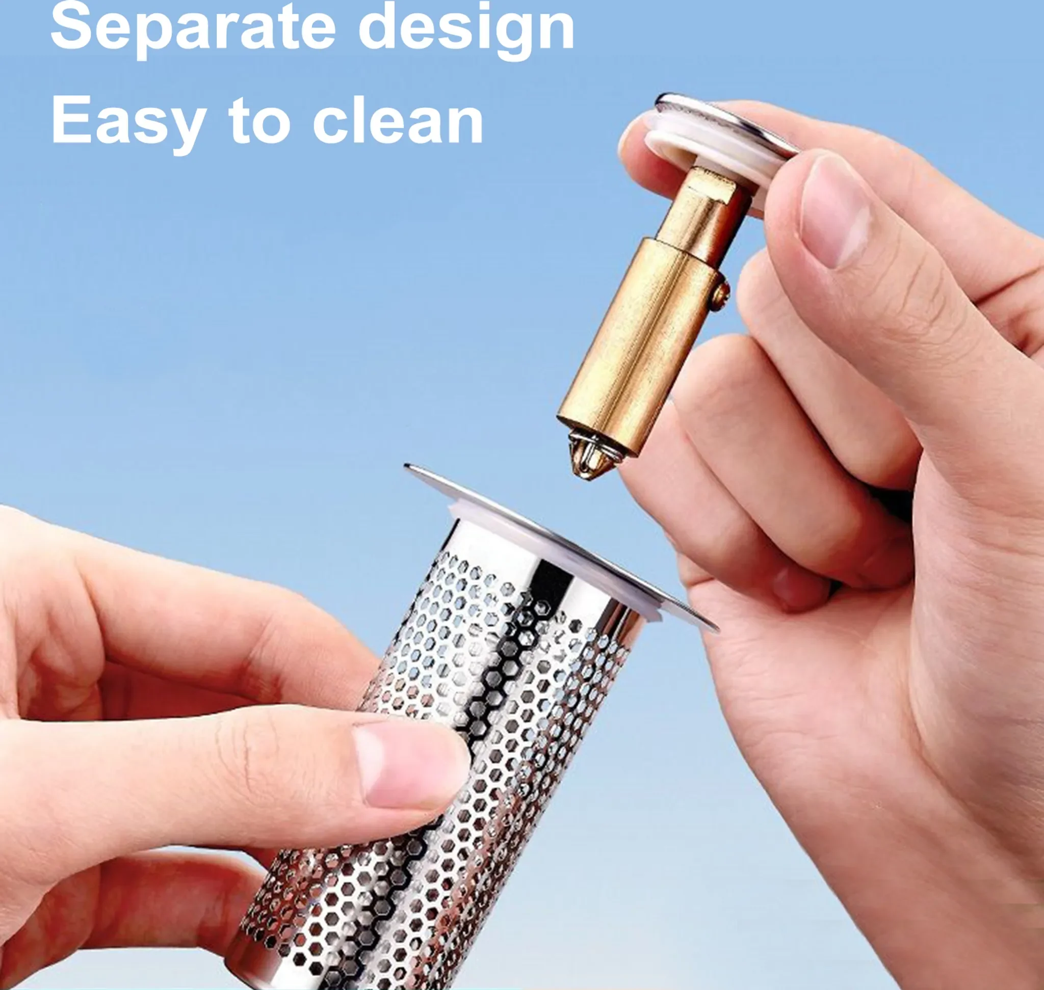 Produktinformationen "Universal-Waschbeckenstöpsel mit Haarsieb – Rostfreier Messingkern"