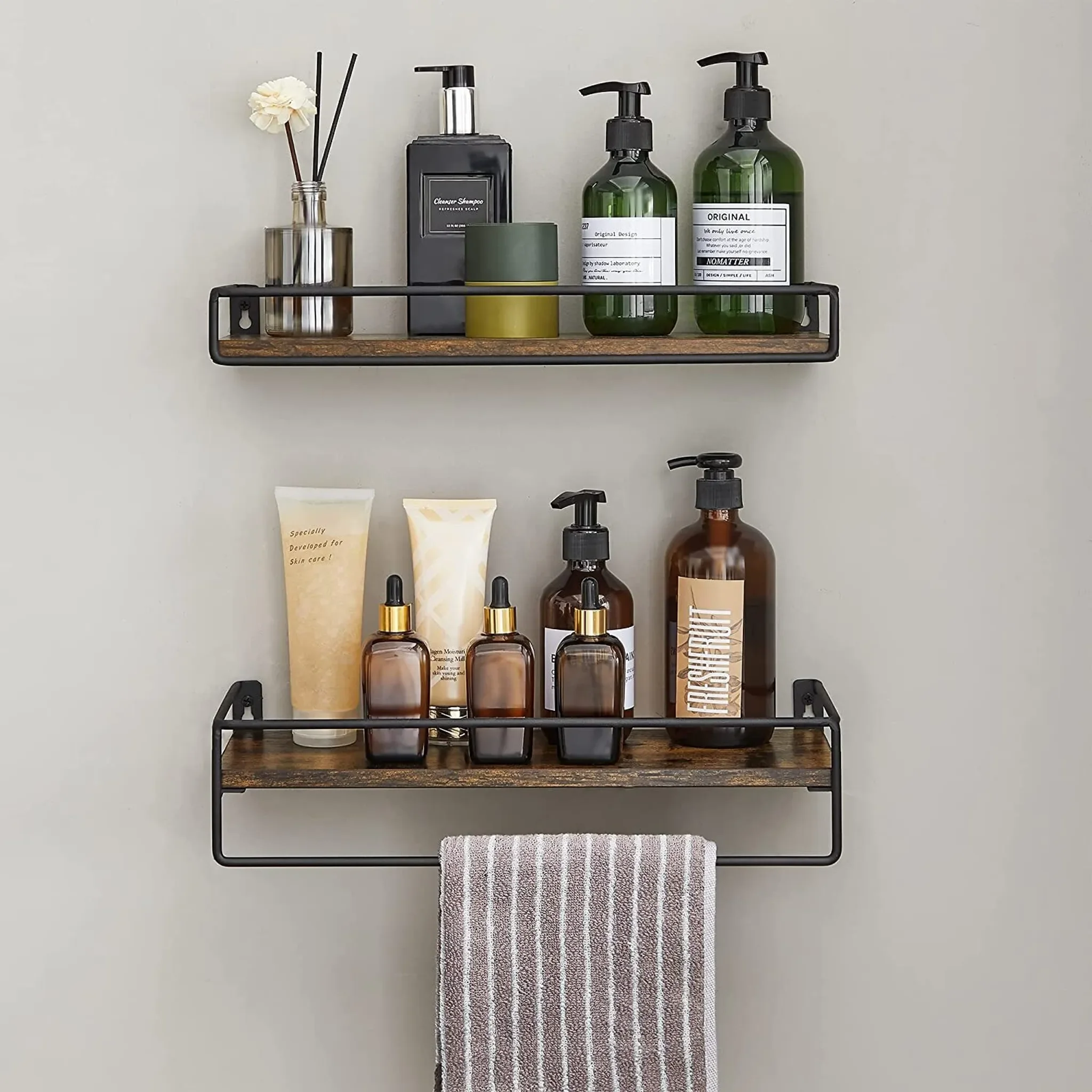 VASAGLE Wandregal 2er Set – Schweberegal mit Stange, Vintagebraun-Schwarz