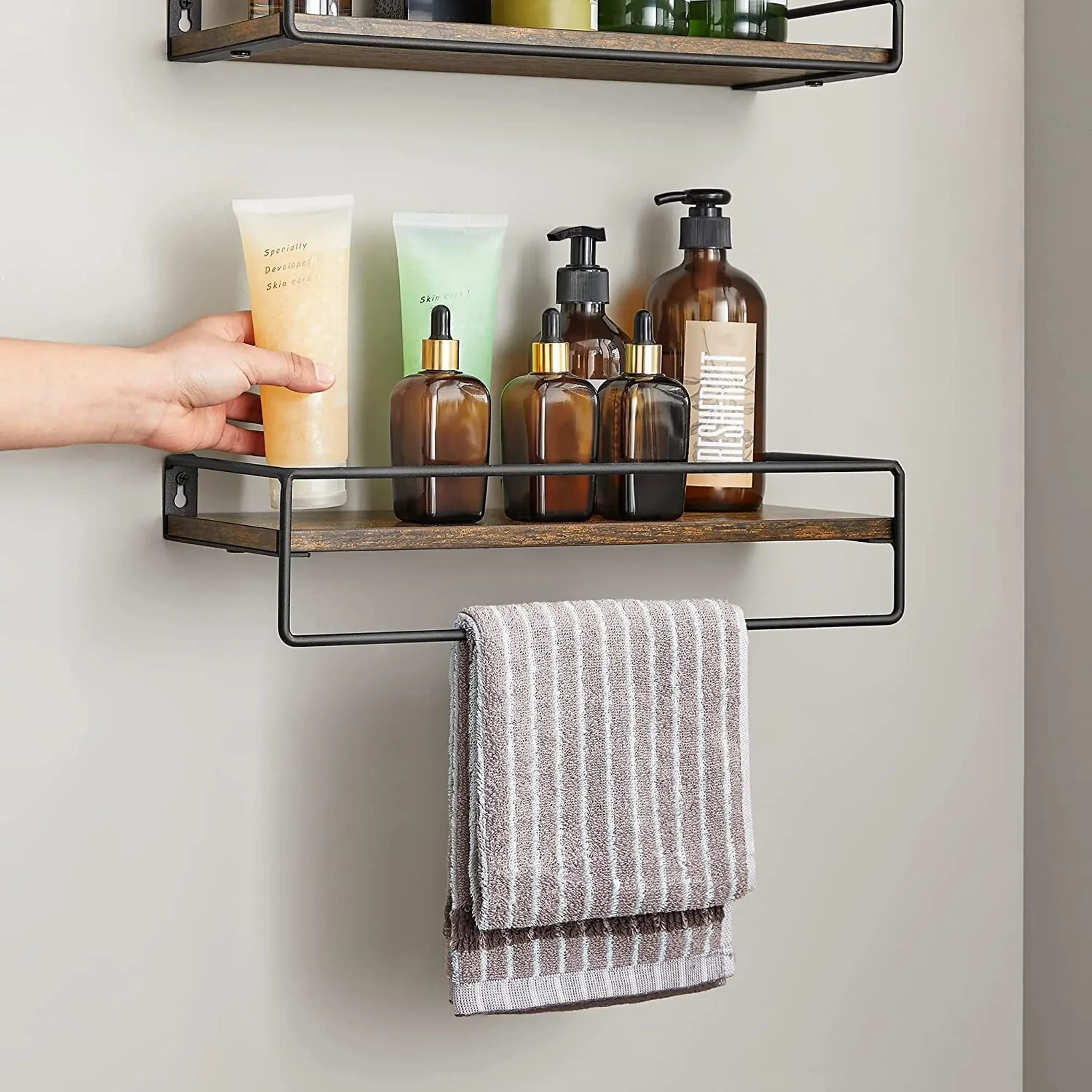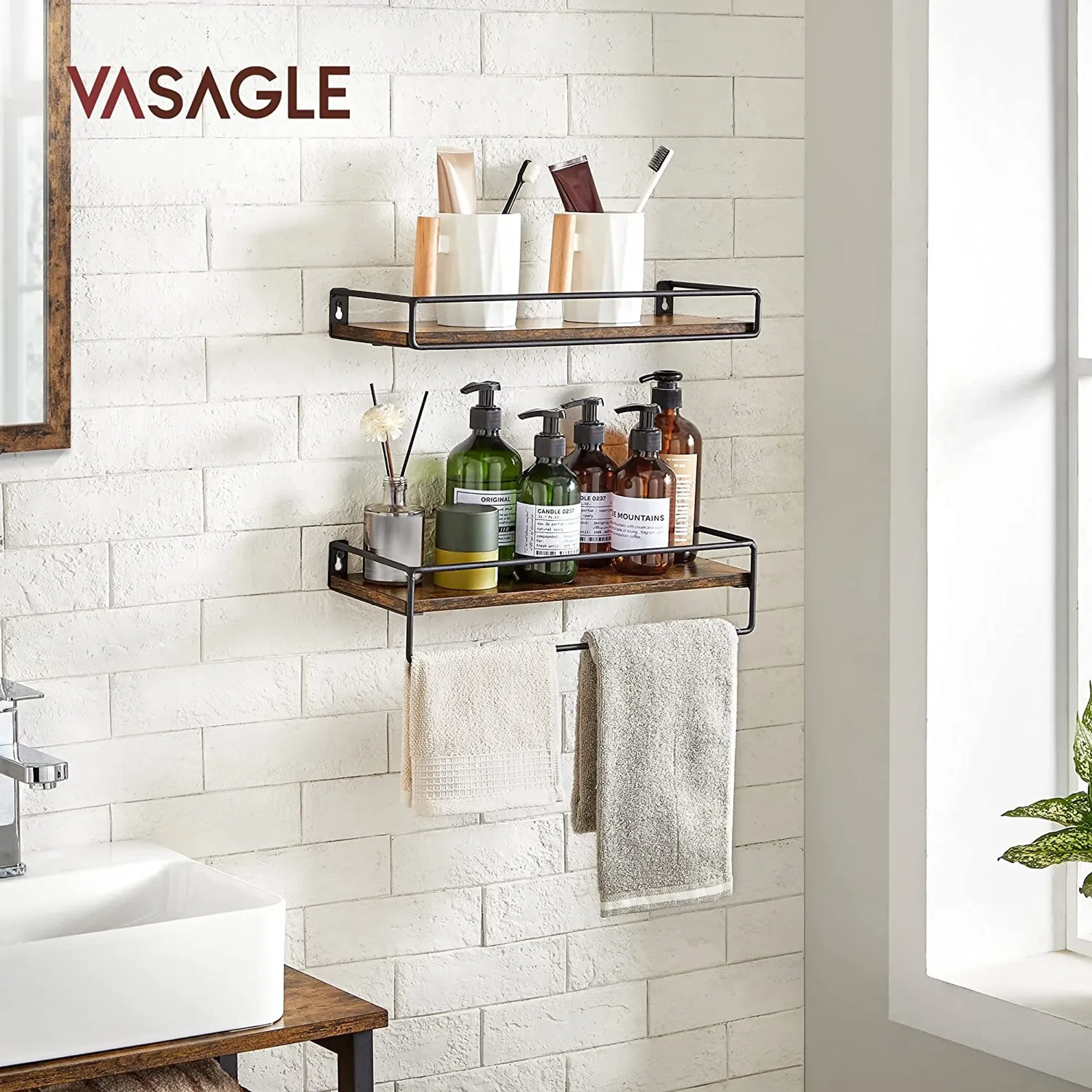 Produktinformationen "VASAGLE Wandregal 2er Set – Schweberegal mit Stange, Vintagebraun-Schwarz"