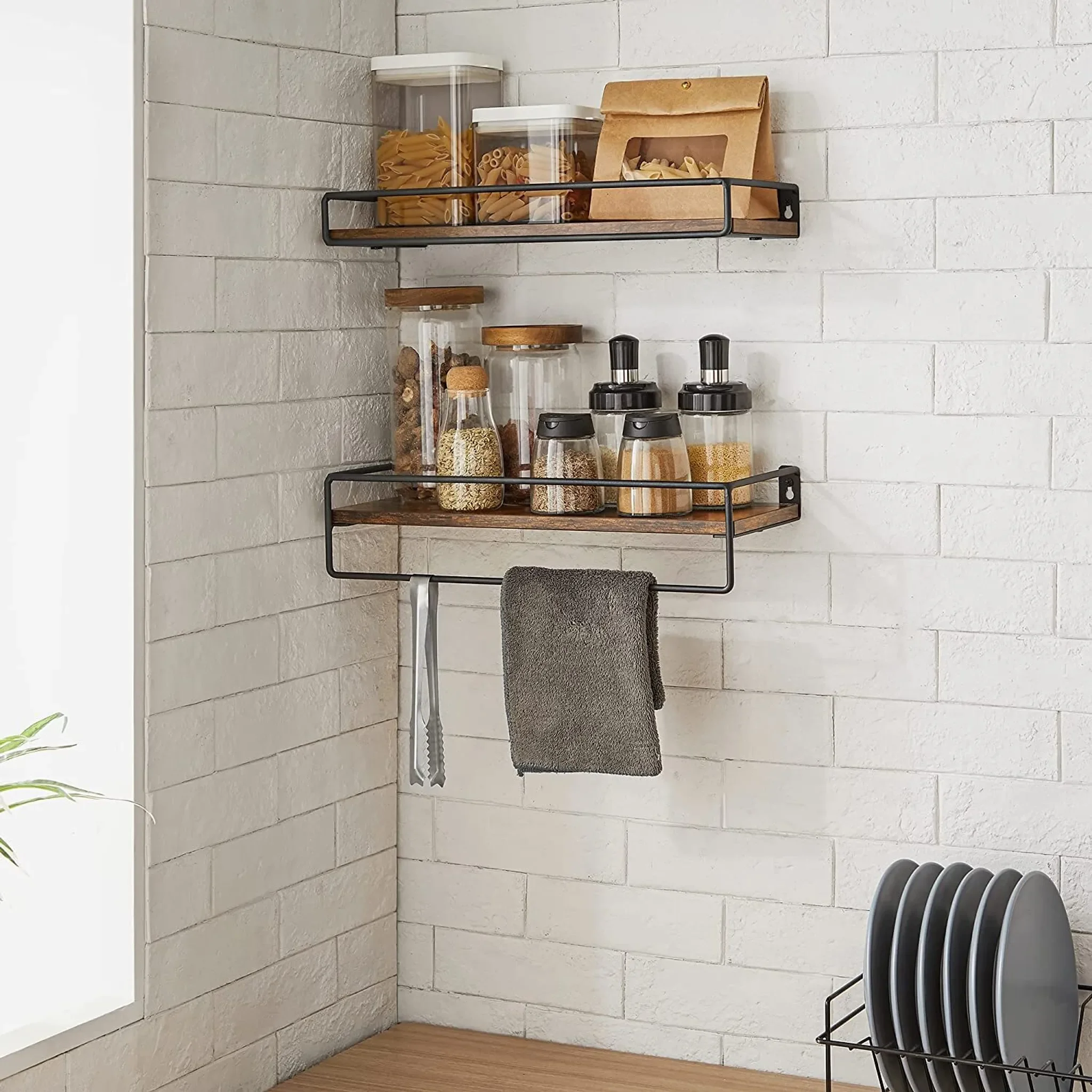 Ideal für Küche, Flur, Wohnzimmer oder Schlafzimmer. Lieferumfang: 2 x Wandregal, Zubehörpaket, Anleitung. Hinweis: Nicht für Kinder zum Klettern oder Spielen geeignet.