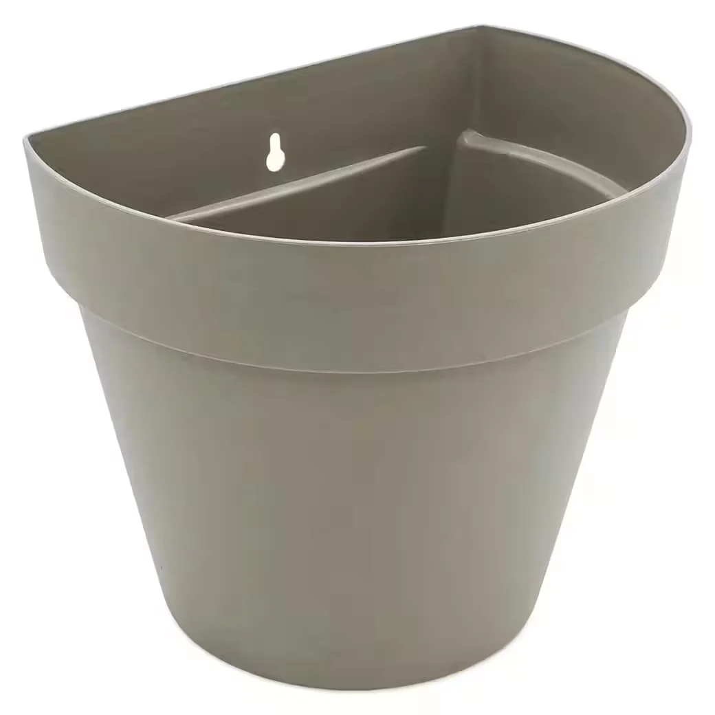Dieser halbrunde Wand-Blumentopf aus robustem Kunststoff setzt stilvolle Akzente an Balkon, Terrasse oder Garten. Die sandfarbene Oberfläche wirkt dezent und modern, während die UV-beständige Farbqualität dauerhaft brillant bleibt – ganz ohne Ausbleichen in der Sonne. Dank integrierter Aussparung lässt sich der Topf unkompliziert an der Wand befestigen und eignet sich ideal für Kräuter, Blumen oder dekorative Pflanzenarrangements.