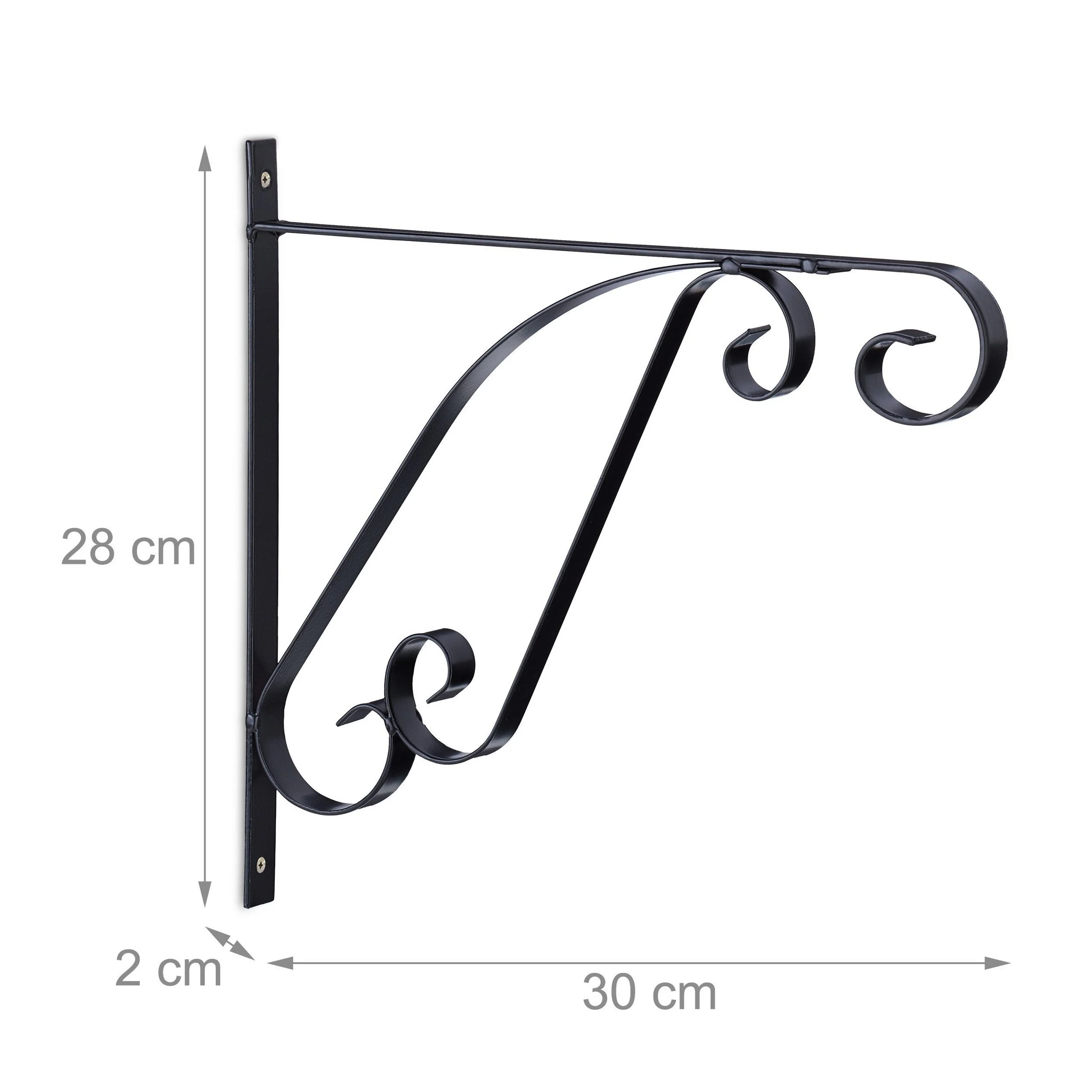 Wandhaken für Blumenampeln – 2er-Set, Eisen, Schwarz, 28 × 30 × 2 cm