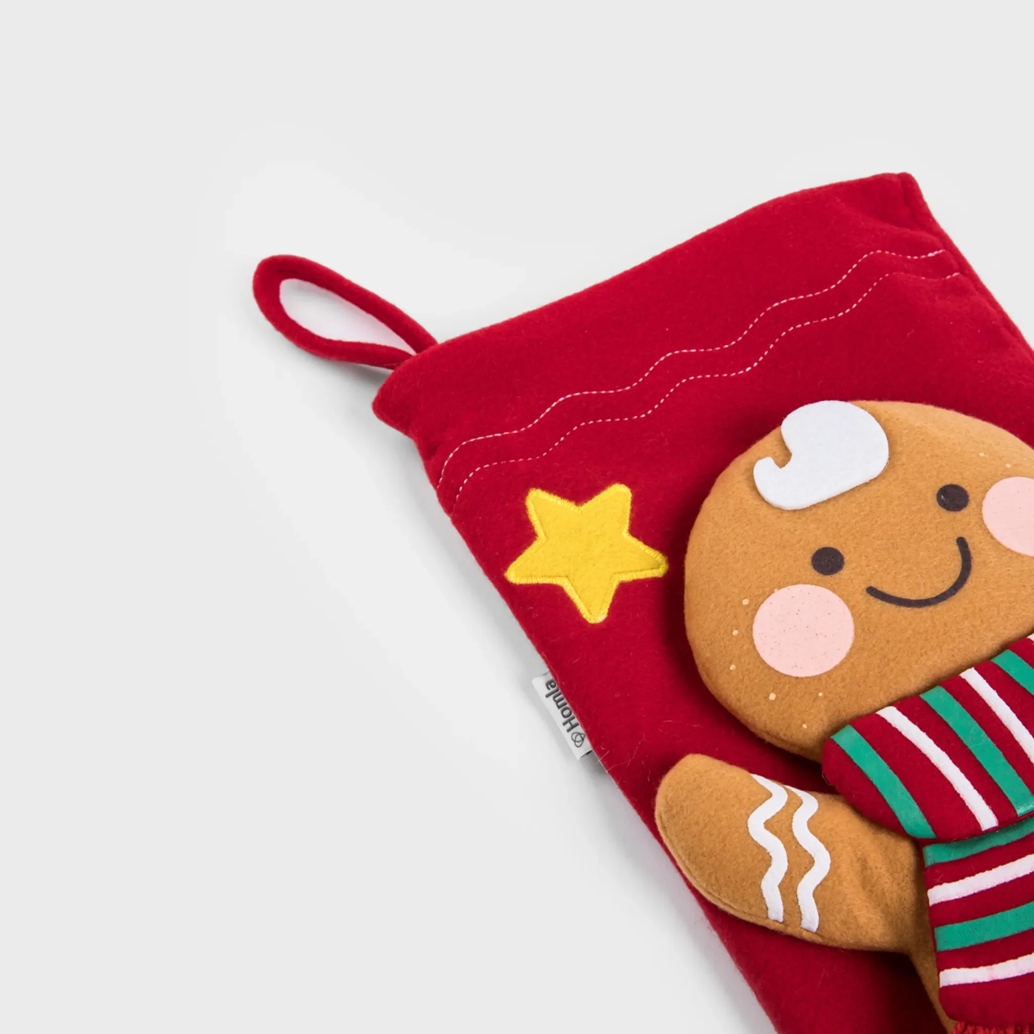 Die Weihnachtssocke „BOWII“ von HOMLA bringt mit ihrem niedlichen Lebkuchenmann-Motiv sofort festliche Stimmung in Ihr Zuhause. Die kräftigen Farben und verspielten Details greifen klassische Weihnachtsmotive auf und schaffen eine warme, märchenhafte Atmosphäre – perfekt für die Adventszeit und Heiligabend.